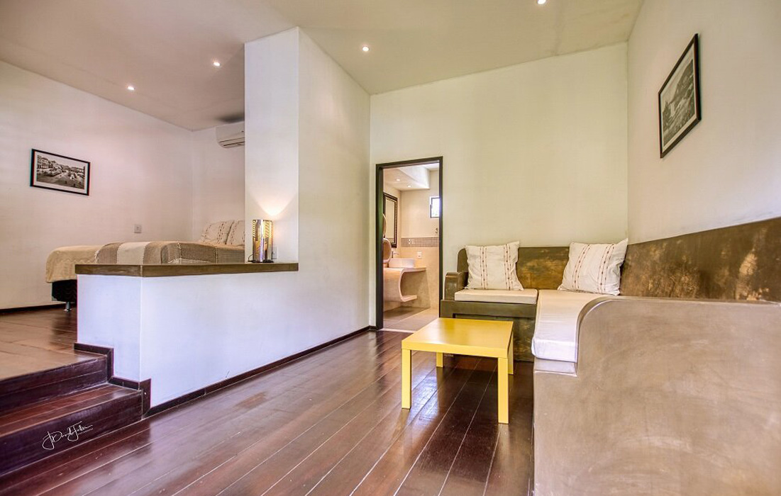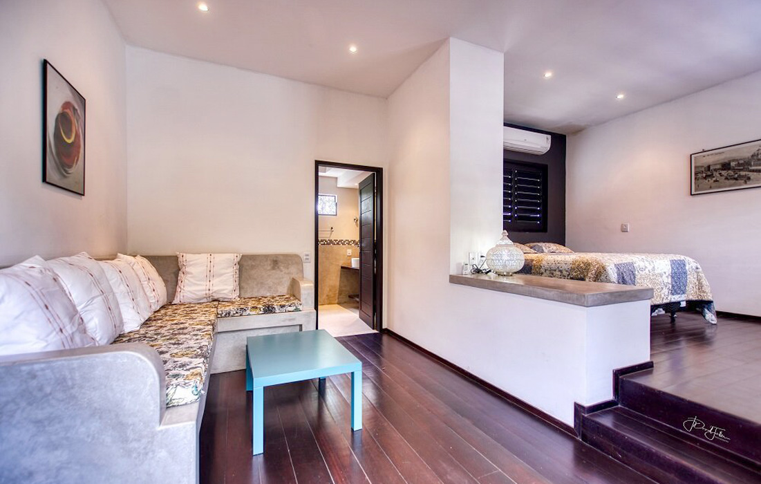 All our suites have a bedroom with a king-size bed, extra sofa, A/C, internet, terrace, en-suite bathroom with shower, hair dryer, vanity and WC.